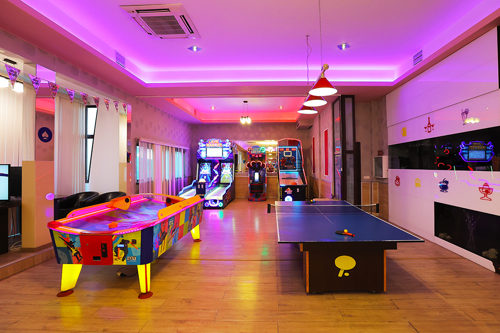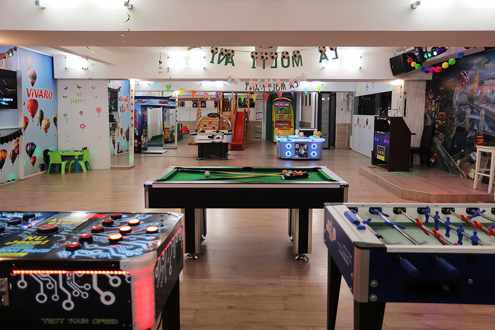 Ambele săli, Junior Party și Arcade Party, dispun de un spațiu open de 250 mp și sunt dotate cu jocuri mecanice și electronice pentru distracție, amuzament și sport: Boxer, Fotbal multiplayer, Basketball, Air hockey, Reflex Race machine, Minibowling, Masă fotbal, Biliard, Consolă cu volan Gran Turismo, Console PS4 cu controller, Consolă PS4 Just Dance, System karaoke, Mini golf, Masă de tenis și multe altele.